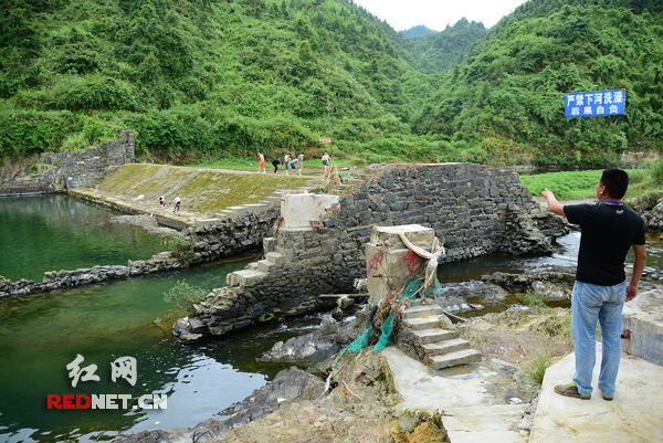 7月20日,新晃县环保局副局长杨毅对下河游泳的青年进行劝阻。