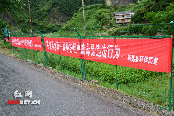 新晃县环保局在平溪河饮用水源地拉横幅呼吁人们保护水资源。