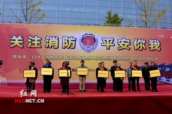 怀化市“119”消防宣传月活动暨重点单位微型消防站技能比武大赛启动仪式在怀化市国际会展中心举行。