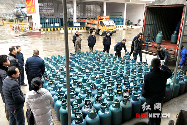 现场卸下222只液化气钢瓶。