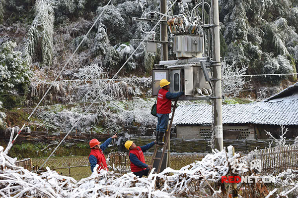 1月7日,随着灾情的不断加重,抗灾抢险保供电任务随之加重。由于雪峰镇、塘湾镇、湾溪乡、群峰乡、熟坪乡等都位于崇山峻岭之中,当地冰雪未融化,道路交通不便,自然环境和施工条件均十分恶劣。公司领导分片坐镇灾区指挥一线抢险,百余名抢修人员打响了惊心动魄的“抗冰保电”战役。