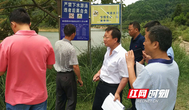 省督查组查看水库责任人公示牌。