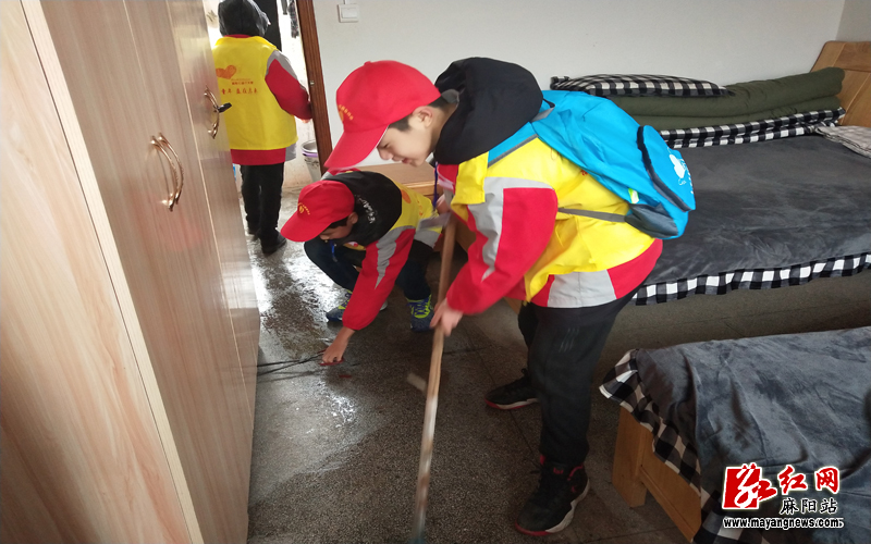 公益小天使打扫老人们的房间。