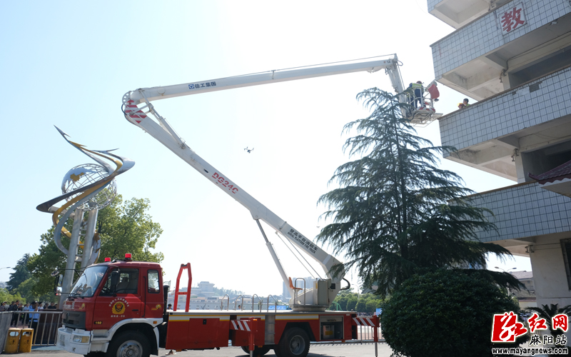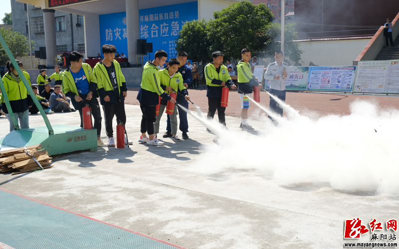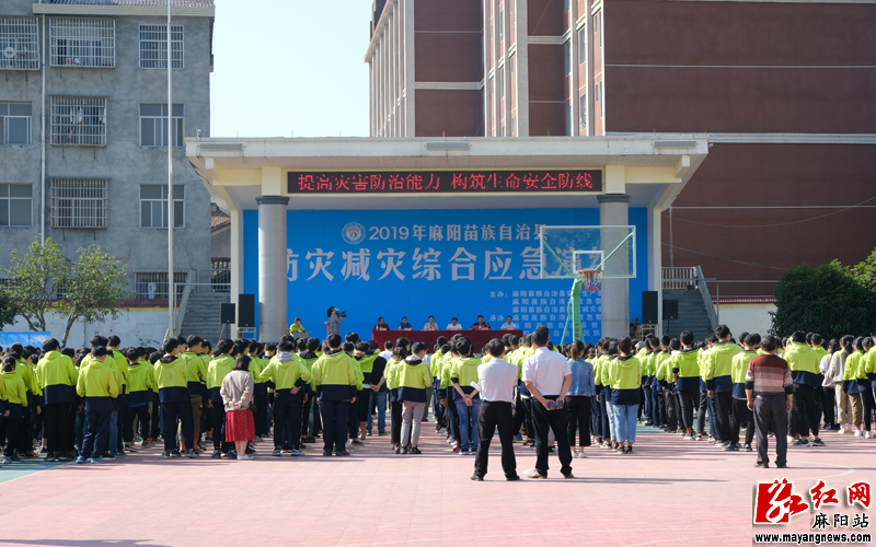 红网时刻怀化5月25日讯(通讯员 郑春艳 李光)5月23日,2019年怀化市麻阳苗族自治县防灾减灾综合演练在该县民族中学举行。本次活动由县安全生产委员会、县应急委员会、县防灾减灾委员会主办,县应急管理局、县教育局承办。县领导廖园熙、刘军、龚凌参加,各乡镇和全县中小学校负责人现场观摩,县民族中学2400余名师生参加演练。