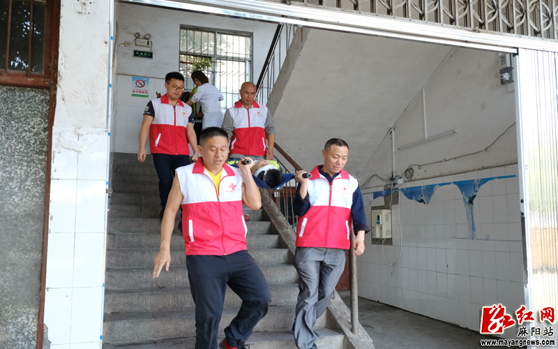 上午9点,接收到信号员发出的“地震警报”信号后,上课教师立即停止授课,有序指挥学生迅速抱头、闭眼,躲在各自的课桌下或课桌旁。60秒后警报解除,老师迅速组织学生撤离教室,按照预定的疏散路线,撤离至避震地点集中。各班班主任立即清点人数,发现八年级有两名学生被困教室,现场指挥部发出搜救指令,搜救人员迅速到达指定位置搜救。县红十字会则组织急诊医生对师生开展灾后救治,救护车驶入演练现场进行“伤者”抢救。
