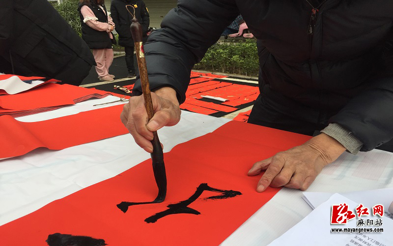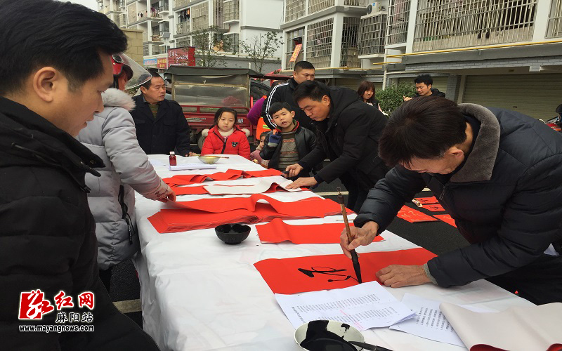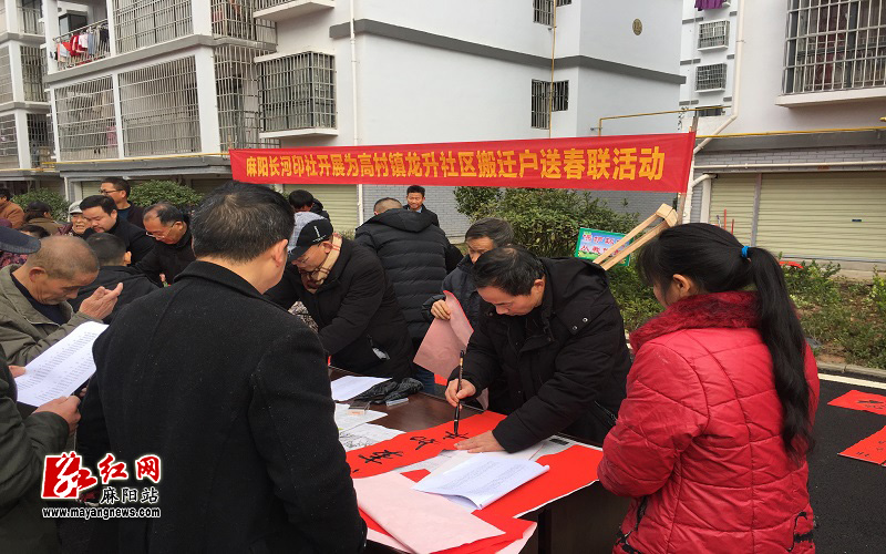 红网时刻怀化1月8日讯(通讯员 米周文)“易地搬迁通富路,开春稼穑沐新风”“喜居宝地千年旺,福照家门万事兴”……1月7日上午,怀化市麻阳县高村镇龙升家园易地扶贫搬迁集中安置点内呈现出一派欢乐祥和的气象,麻阳县书法家协会(长河印社)的书法名家挥毫泼墨,现场书写对联免费赠送给该小区内的966户搬迁户。