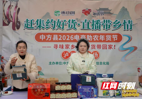 红网时刻新闻1月21日怀化讯(通讯员 石端)1月20日,中方县2026年“中味方好”年货节泸阳镇专场直播热闹开播,以“寻味家乡年,好货带回家”为主题,通过“村部主场+赶集街区”双场景直播,让泸阳镇优质农产品通过镜头走向全国。