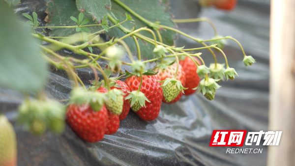 红网时刻新闻1月30日怀化讯(通讯员 杨森)1月29日,中方县泸阳镇下坪村的草莓大棚里暖意融融,一颗颗鲜红饱满的草莓掩映在翠绿枝叶间,果香四溢、色泽诱人,迎来了成熟上市的黄金期,棚内处处是丰收的喜人景象。