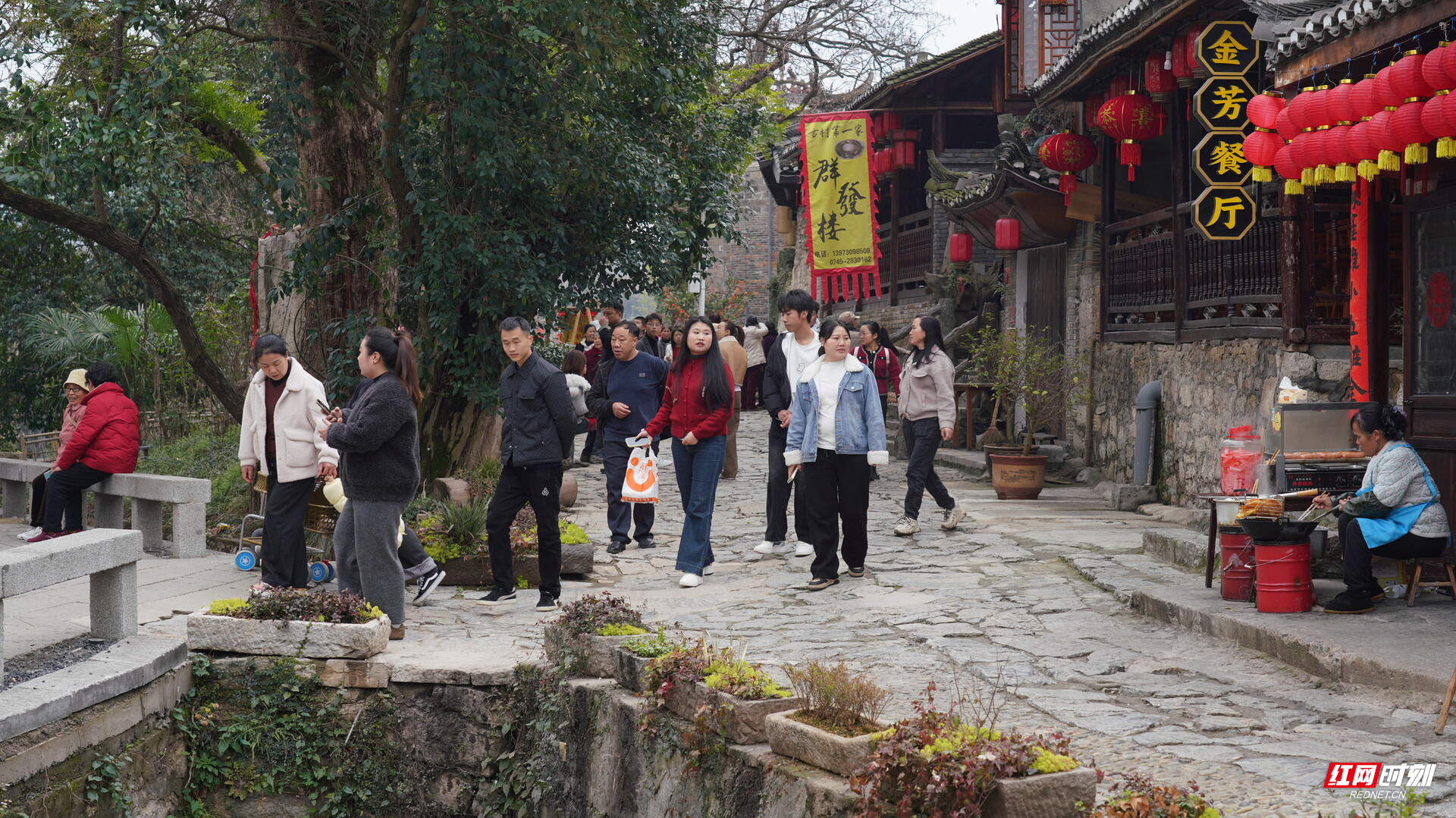 为了让游客感受到浓厚的传统年味,荆坪古村自正月初一起便推出了系列节庆活动:初一“开门纳福”文艺汇演、初二“龙腾古村”锣鼓巡游、初三“古狮舞吉祥”、初四农俗体验……精彩纷呈的民俗活动将持续至元宵节。