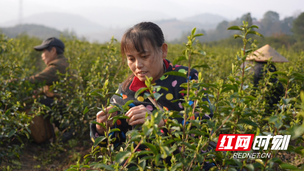红网时刻新闻3月13日怀化讯(通讯员 杨森)3月13日,中方县花桥镇千丘田村茶叶种植基地绿意盎然、生机勃勃。鲜嫩茶芽俏立枝头,在春日阳光下泛着翠绿光泽,一年一度的采茶季如期而至。茶园里,100余名茶农身背竹篓,穿梭于茶垄之间,抢抓晴好春光,采摘品质上乘的明前新茶。