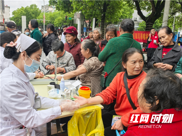 此外,怀化市中心医院靖州院区的医护人员现场同步开展爱心义诊,免费为群众测量血压、血糖,做眼部检查,提供健康咨询、常见病诊疗指导,并结合临床实际科普医保就医报销相关知识、个人医保信用规范等相关常识。现场群众驻足咨询、有序问诊,氛围热烈有序。