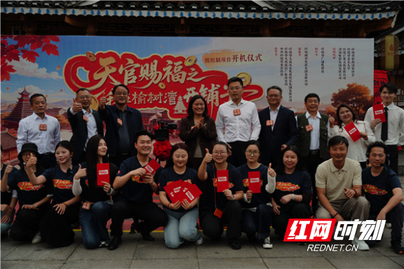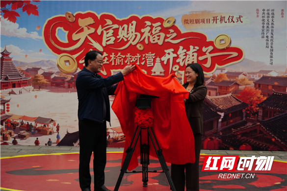 开机仪式现场,嘉宾与剧组全体人员齐聚一堂,共同见证这部本土IP新作的正式启动。与传统短剧不同,《天官赐福之我在榆树湾开铺子》跳出套路化叙事,将本土榜样人物与市井生活自然融合,用一个个接地气的故事传递怀化独有的“福气”。