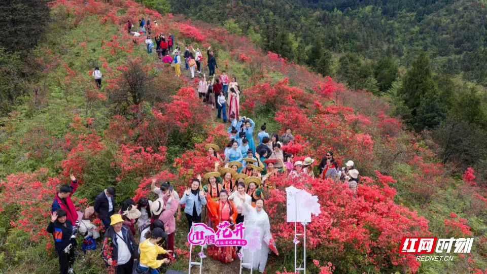 龙庄湾乡凉风界素有“三湘凉都”之称,当前正值杜鹃盛花期,漫山红遍,与青山界抗战遗址、刘家湖水库等资源相映成趣。本次大赛将开镜仪式直接设于花海核心区域,领导嘉宾简短致辞后,摄影师们便架起设备投入创作,现场快门声此起彼伏。