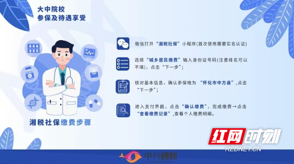 红网时刻新闻10月31日怀化讯(通讯员 王子豪 杨蓓文)近年来,中方县深入贯彻国家关于提高高校学生医疗保障质量的决策部署,紧扣 “‘十四五’末高校学生基本医保实际参保率明显提升”的目标,以“参保有引导、缴费有服务、待遇有保障”为工作主线,联动教育、税务、高校等部门形成合力,从政策宣传、参保服务到待遇落实全链条优化,切实为辖区怀化师专、工商职院等高校学生健康成长保驾护航。