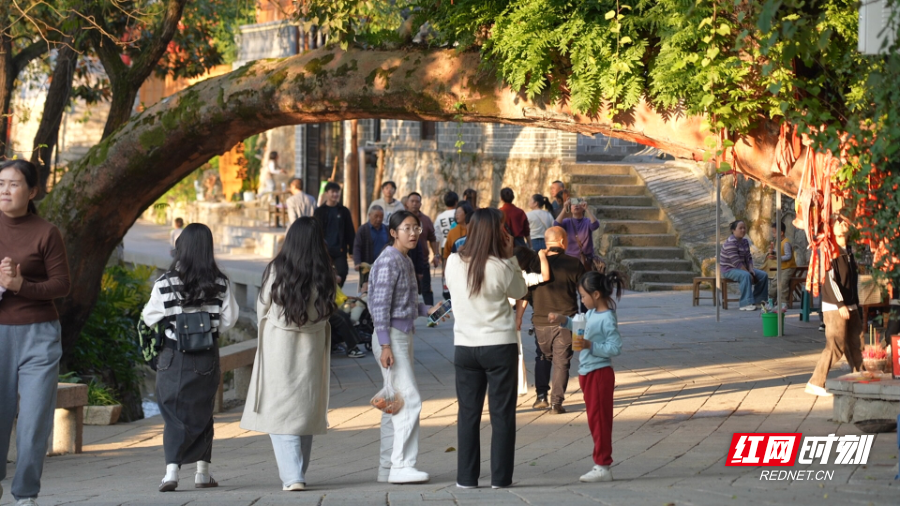 红网时刻新闻11月18日怀化讯(通讯员 杨森)11月16日,周末恰逢晴好天气,中方县荆坪古村游人如织,冬日暖阳与热闹的人气交织,旅游热度居高不下。在潘氏宗祠前,精雕细琢的牌坊浮雕栩栩如生,深厚的历史文化底蕴扑面而来,引得游客纷纷驻足观赏、拍照留念。