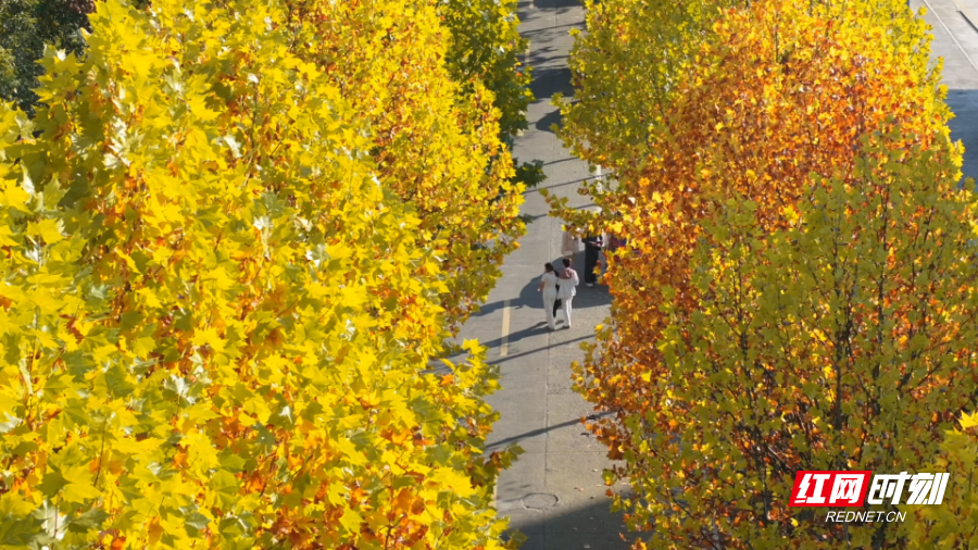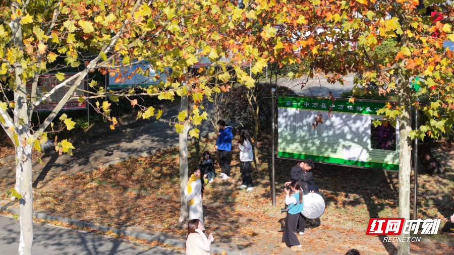 来自芷江的摄影爱好者周晓杰正操控无人机航拍全景,他告诉记者,自己每年都会来中方拍摄秋冬景致,“梧桐大道的金黄、银杏路的‘黄金铠甲’,每一处都特别出片,我们自发组队来创作,就是想把怀化的美景宣传出去。”