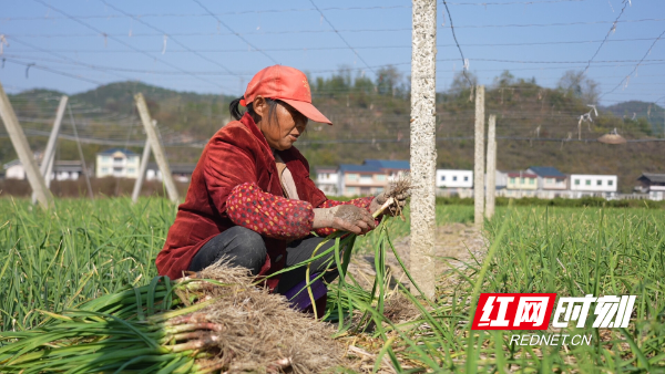 “我家种了四亩大蒜,一天能采一两百斤,现在能卖到五块钱一斤,算下来到年底能有八九万块钱收入。在家门口做事特别方便,不用外出打工,还能照顾家里的老人,日子过得踏实又舒心!”中方县桐木镇桐坪村菜农陈从梅高兴地说。