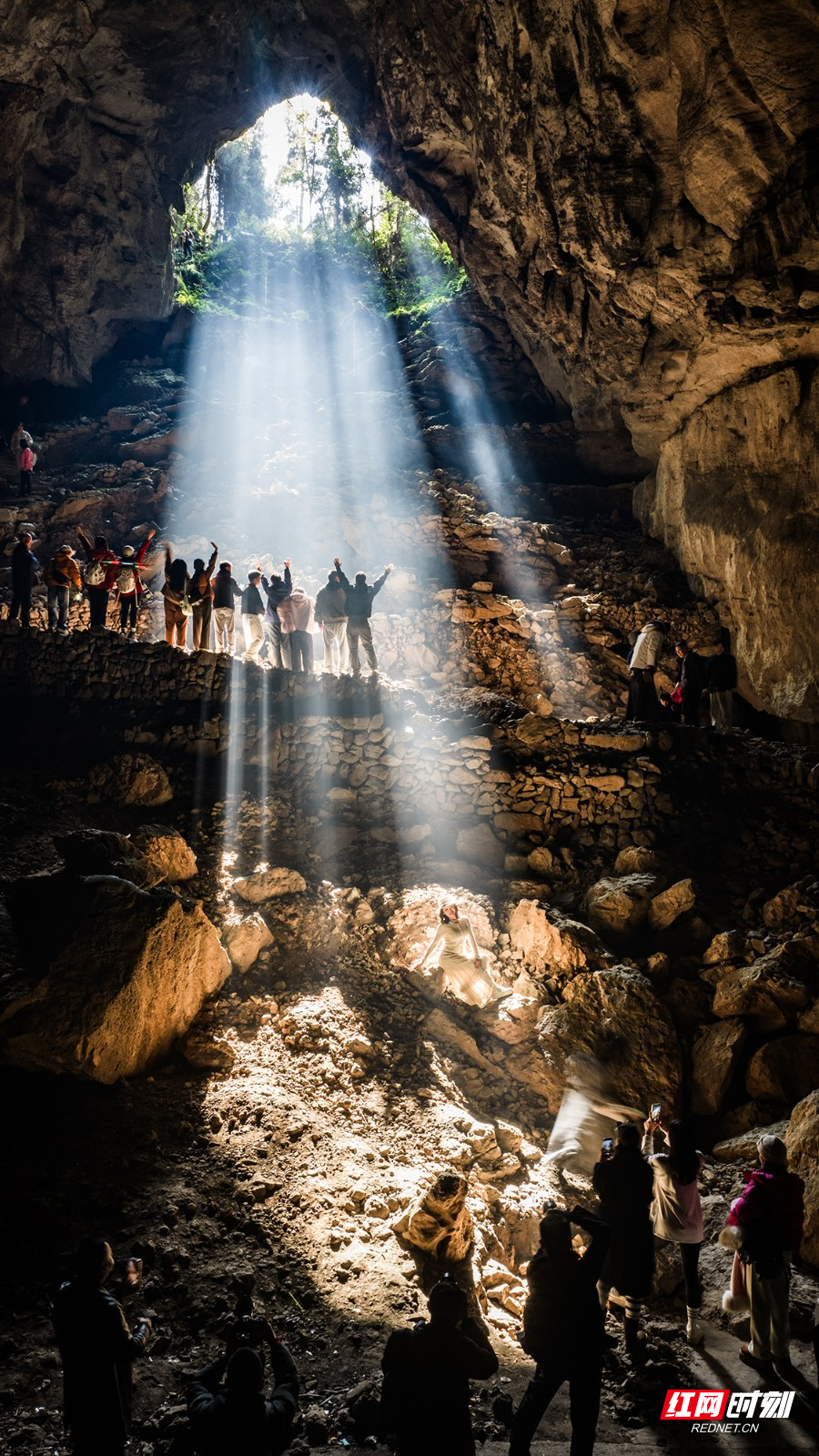 红网时刻新闻12月31日怀化讯(通讯员 田文国)日前,怀化市鹤城区黄岩旅游度假区金鸡洞,一道罕见的“光瀑”射入洞内,“丁达尔”光影倾泻在喀斯特地貌的岩石之上,映出如画般的景象,引来众多游人纷纷拍照,记录下这一自然奇观。