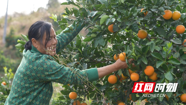 时间回溯到2021年,当时已退休的成桂英看中了花桥镇优越的交通条件和肥沃的土壤,决心在家乡发展水果种植产业。经过多方走访考察,她最终决定从麻阳苗族自治县引进优质锦蜜冰糖橙品种。经过4年的精心培育,这片果园终于迎来挂果投产,结出累累硕果。如今,果园不仅为成桂英带来了实实在在的经济收益,还为周边村民提供了就近务工的岗位,有效带动了当地特色产业发展和村民增收致富。